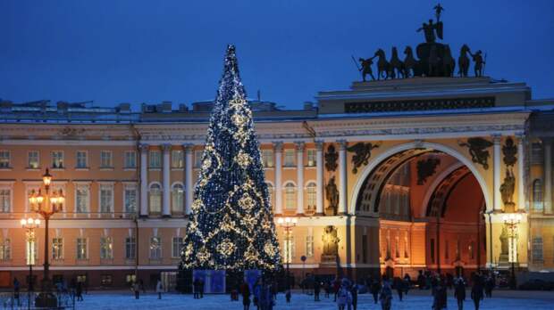 В Санкт-Петербурге всероссийский Дед Мороз вместе с губернатором Александром Бегловым торжественно зажгли на Дворцовой площади огни главной городской новогодней ёлки.