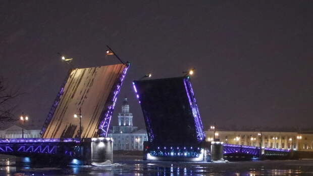 В Санкт-Петербурге в ночь на 14 декабря запланирован последний в 2021 году развод мостов.