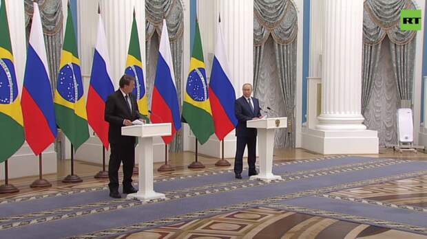 Владимир Путин и президент Бразилии Жаир Болсонару провели переговоры в Москве. Лидеры обсудили вопросы укрепления двустороннего стратегического партнёрства, развития сотрудничества в торгово-экономической и других областях, а также обменялись мнениями по ключевым проблемам международной повестки дня.