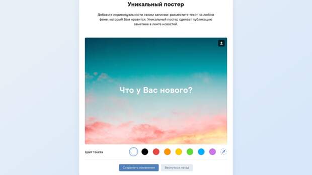 В сообществах во «ВКонтакте» появилась возможность загружать собственные фоны для постеров. Об этом сообщает пресс-служба социальной сети.