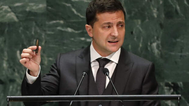 Президент Украины Владимир Зеленский во время выступления на Генассамблее ООН показал пулю калибра 12,7 мм, которой, по его словам, был убит в Донбассе украинский оперный певец Владимир Слипак.