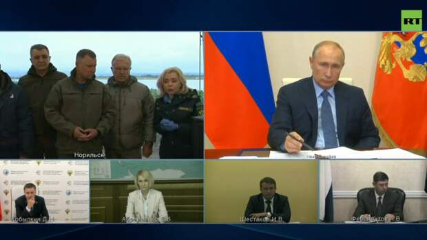 Президент России заслушал доклады по вопросу ликвидации последствий разлива нефтепродуктов под Норильском. С докладами выступили глава МЧС Евгений Зиничев, руководитель Росприроднадзора Светлана Радионова, губернатор Красноярского края Александр Усс и глава «Норникеля» Владимир Потанин.