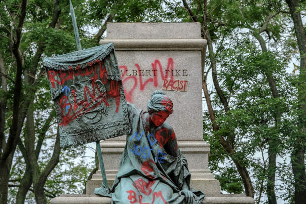 19 июня протестующие в Вашингтоне повалили статую Альберта Пайка — философа и литератора, который во время Гражданской войны в чине генерала командовал соединениями воевавших на стороне Конфедерации индейских племён. После этого Дональд Трамп в своём Twitter обвинил столичную полицию, которая не предотвратила происходящее, в бездействии.