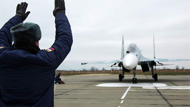Как сообщает ТАСС, на аэродром была совершена первая техническая посадка — из Крымска прилетели истребители Су-30М2.