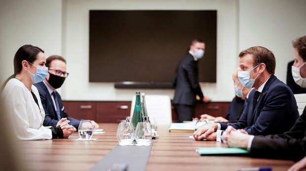 Ранее в Вильнюсе состоялась встреча Тихановской с Макроном.