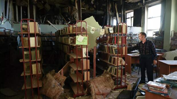 В библиотеке попавшей под удар ВСУ школы в посёлке Форос на южном берегу Крыма взрывной волной вынесло часть стены.