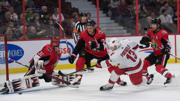 «Каролина Харрикейнз» потерпела поражение от «Оттавы Сенаторз» в матче регулярного чемпионата Национальной хоккейной лиги (НХЛ).
