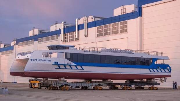 В Санкт-Петербурге спустили на воду пассажирский катамаран «Форт Кроншлот», рассчитанный на 200 пассажиров. Он выйдет на линию в июне 2023 года.