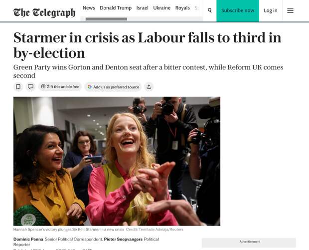 Отмечается, что глава правительства лично ездил в округ и «поставил на карту свой собственный авторитет», однако всё равно потерпел неудачу. Это происходит в «самый опасный момент» за всё время пребывания Стармера на посту премьера, подчёркивают журналисты.