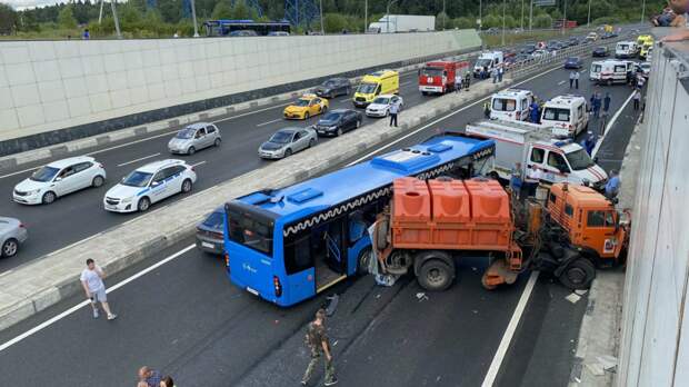 Ранее в результате столкновения рейсового автобуса и грузовика на Боровском шоссе в Москве пострадали 11 человек. Водитель автобуса, по данным источника, задержан.