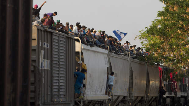 Набитый мигрантами грузовой поезд, следующий из мексиканского города Сакатекас в направлении южной границы США, засняли на видео.