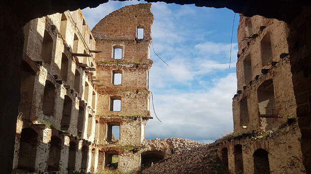 Частных деревянных домов больше нет, потому что их разбирали при переезде и забирали с собой. Остались только муниципальные кирпичные здания. Около реки стоят руины дореволюционной мельницы. Шестиэтажные стены с обвалившимися перекрытиями — самая большая постройка в окрестностях.