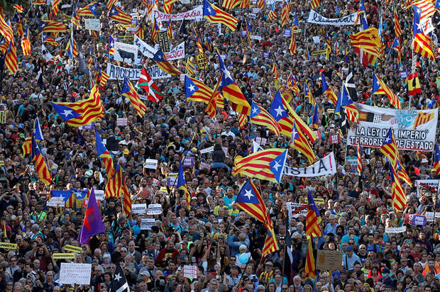 Около 80 тыс. сторонников территориальной целости Испании вышли на митинг за единство страны. Параллельно протестную акцию устроили сторонники независимости Каталонии, которые уже почти две недели организуют демонстрации численностью до полумиллиона человек. Волнения в Испании были вызваны решением Верховного суда страны приговорить к тюремным срокам бывших чиновников автономии за организацию референдума о независимости.