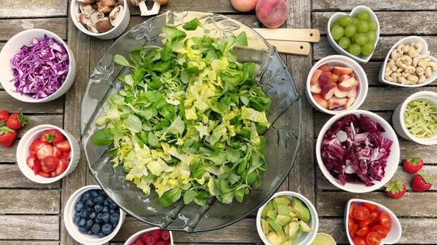 Также должно быть достаточное количество овощей, могут присутствовать и цельнозерновые крупы.