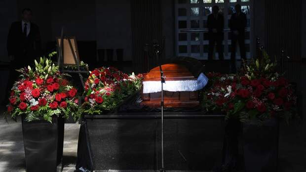 Близкие родственники, коллеги, друзья и поклонники несут цветы, чтобы почтить память о нём и проводить в последний путь.