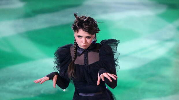 Валиева выступает с номерами In memoriam, которая была короткой программой в олимпийском сезоне, и «Уэнсдей».