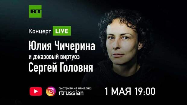 Телеканал RT в пятницу, 1 мая, в 19:00 мск покажет в прямом эфире концерт певицы Юлии Чичериной и джазового музыканта Сергея Головни.