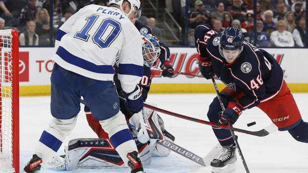 «Тампа-Бэй Лайтнинг» потерпела поражение от «Коламбус Блю Джекетс» в матче регулярного чемпионата Национальной хоккейной лиги (НХЛ).