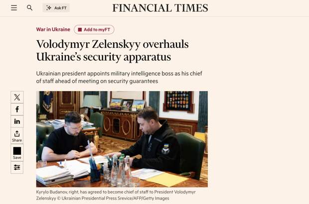 Со своей стороны, The Financial Times подчёркивает, что Зеленский проводит масштабную реорганизацию украинского аппарата безопасности.