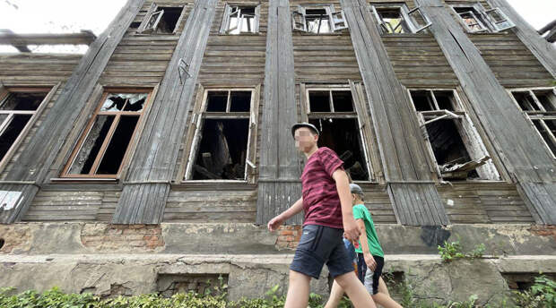 Буквально рядом с кремлём, на улице Карла Маркса, — развалины. Стена фасада на три этажа с осыпавшейся штукатуркой. За ней сквозь пустые оконные проёмы видны руины кирпичной кладки. Остальные стены сохранились и того хуже, а крыши нет вовсе.