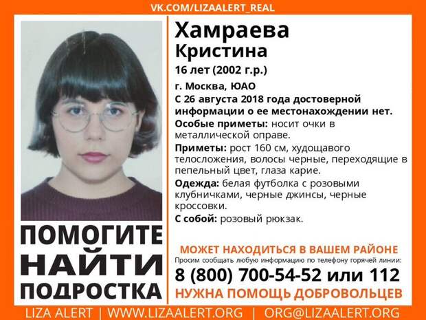 В 2018 году в Москве пропала 16-летняя школьница Кристина Хамраева. По версии следствия, её убил и расчленил друг-ровесник Кирилл Ладынский из Хабаровска. На допросе молодой человек признался, что они долго переписывались в интернете, а затем решили встретиться в Москве. Но отношения не заладились, и он во время ссоры ударил девушку ножом.