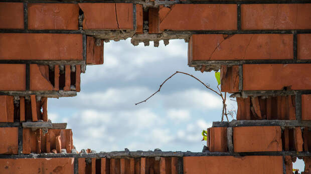 На видео показано разрушенное сооружение, обломки.