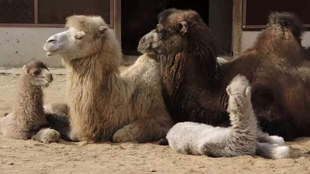 В Московском зоопарке рассказали о появлении на свет детёнышей двугорбых верблюдов. Их назвали Шторм и Буря.