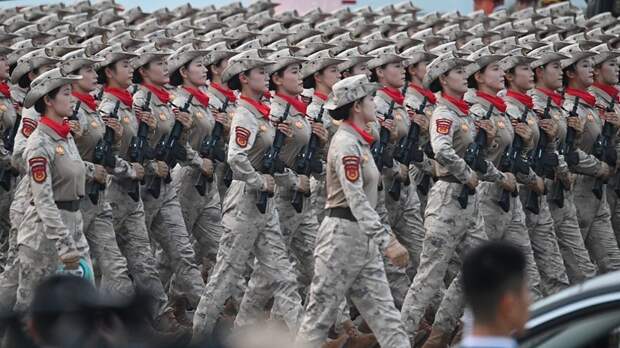 Появились кадры с расчётами на параде в Пекине: среди них женщины-военнослужащие.