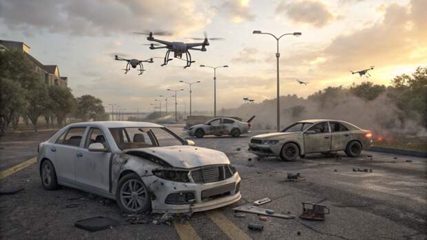 В подмосковном Реутове после атаки беспилотников повреждены четыре автомобиля.