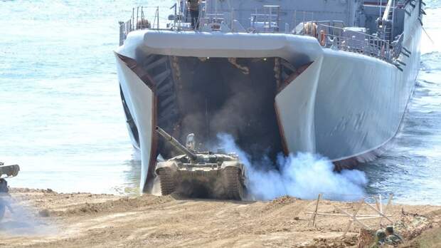 Подразделения морской пехоты под прикрытием армейской авиации Южного военного округа высадились на необорудованный участок побережья с больших десантных кораблей «Орск» и «Азов», провели бой за высадку десанта, заняли прибрежный участок и выдвинулись вглубь позиций условного противника.