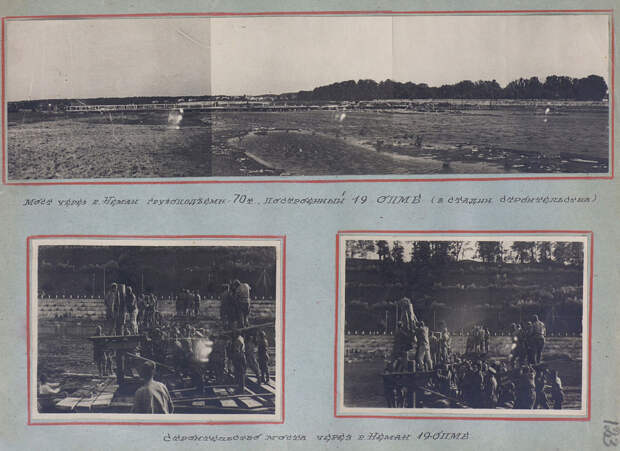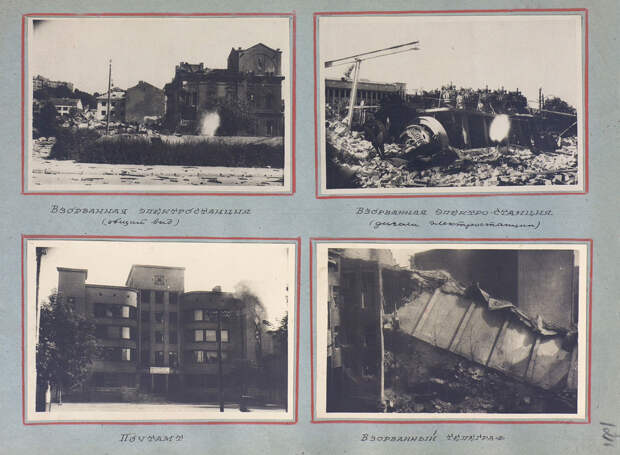Прилагается альбом с уникальными снимками Каунаса. На них запечатлены улицы города после боёв, а также паромные переправы и мосты, наведённые инженерными бригадами вместо взорванных немцами конструкций.