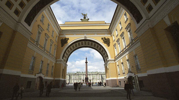 Ранее стало известно, что в историческом центре Санкт-Петербурга из-за сильного ветра с крыши арки Главного штаба обрушились строительные леса.