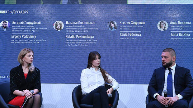 Модератором стала военный корреспондент и ведущая RT Arabic Анна Книшенко, которая работала в Сирии и на Украине.