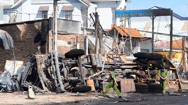 ЧП произошло в провинции Биньфыок после того, как автоцистерна столкнулась с другим транспортным средством.