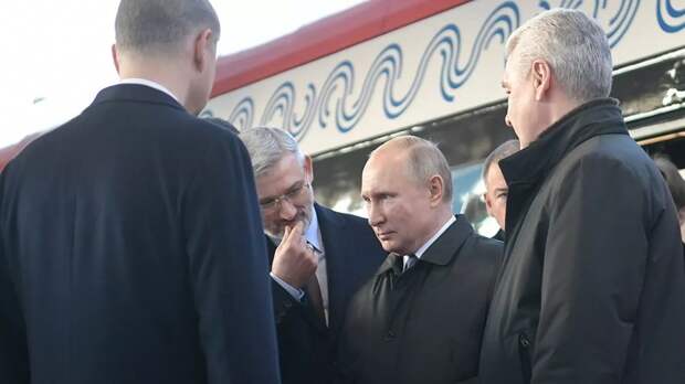 Мэр Москвы Сергей Собянин во время поездки по первому Московскому центральному диаметру (МЦД) подарил российскому президенту Владимиру Путину именную карту «Тройка».