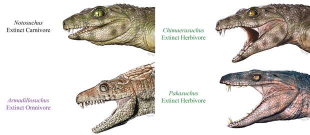 Крокодилообразные рептилии в процессе эволюции переходили на растительную пищу. У этих пресмыкающихся было сложное строение зубов, что указывает на травоядность нескольких видов. К такому выводу пришли американские исследователи, которые изучили окаменелые зубы вымерших древних родственников современных аллигаторов.