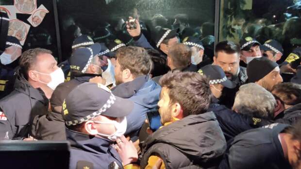 Впоследствии участники акции протеста переместились к зданию гостиницы, где остановился Познер и приехавшие с ним друзья и коллеги. По информации Sputnik Грузия, демонстранты пытались прорвать полицейский кордон и забрасывали здание яйцами.