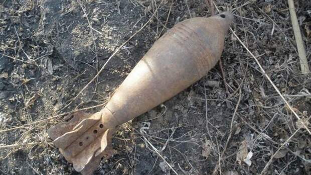 Местные жители нашли миномётный снаряд периода Великой Отечественной войны 160-миллиметрового калибра со взрывателем.