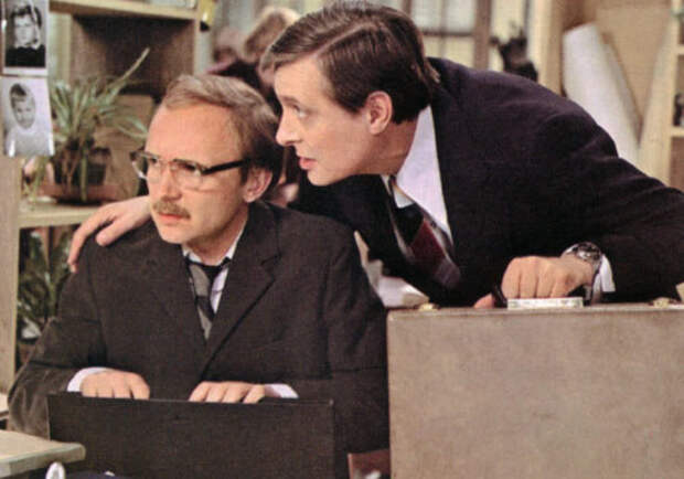 Не все знают, что у Басилашвили в фильме есть ещё одна «роль» — но уже за кадром. Он «играет» супруга секретарши Верочки, с которым та постоянно ругается по телефону.