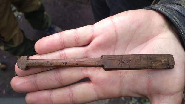 К числу редких артефактов относятся предметы с руническими надписями XII—XIII веков. Одной из таких находок стала сосновая палочка в виде игрушечного меча, на лезвии которого чётко вырезаны восемь символов. Средневековый автор использовал датский вариант рунического алфавита, а надпись, предположительно, означает «целый год».