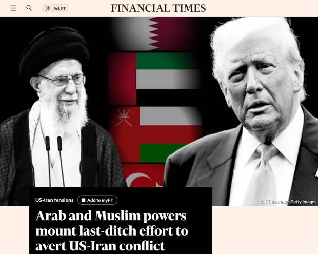 Тем временем мусульманские государства предпринимают «последние отчаянные попытки» отговорить Белый дом от нападения на Иран, отмечает Financial Times (FT).