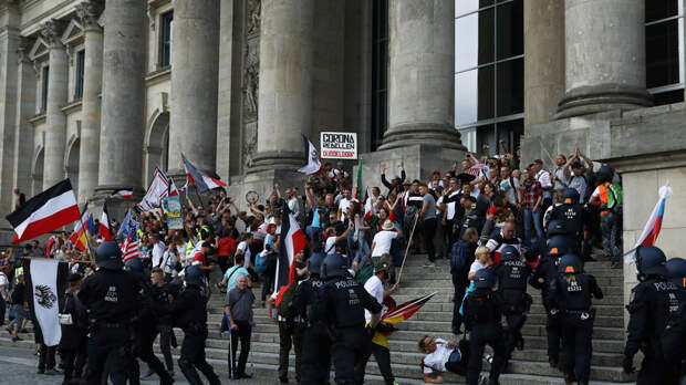 Ранее стало известно, что полиция Берлина освободила площадь Гроссер Штерн, на которой проходил митинг протестующих против ограничительных мер, связанных с коронавирусом.