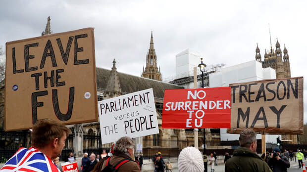 В Великобритании началась акция протеста сторонников брексита, которые обвиняют правительство в «предательстве воли народа» после отсрочки запланированного выхода страны из Евросоюза.