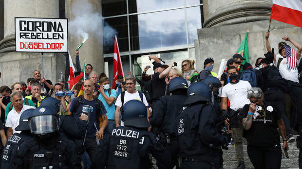 Полиция Берлина освободила площадь Гроссер Штерн, на которой проходил митинг протестующих против ограничительных мер, связанных с коронавирусом.