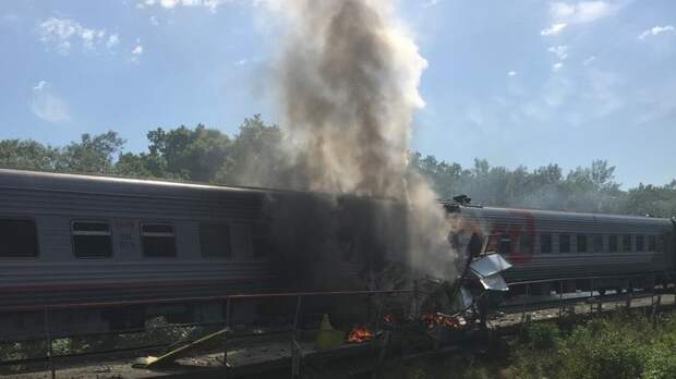 По данным пресс-службы, водитель грузовика выехал на железнодорожный переезд перед приближающимся пассажирским поездом №346 Адлер — Нижневартовск.