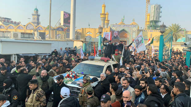 Тысячи человек вышли на улицы Багдада, чтобы принять участие в траурной процессии в связи с гибелью иранского генерала КСИР Касема Сулеймани и замглавы иракского шиитского ополчения Абу Махди аль-Мухандиса. Они погибли в результате ракетной атаки США в ночь на 3 января в районе аэропорта Багдада. RT вёл прямую трансляцию.