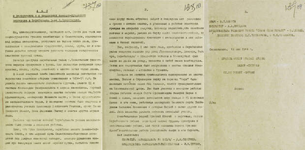 «Почти два года немецко-румынские громилы хозяйничали в Севастополе, издевались над мирным населением, разрушали не только жилые дома, промышленные и коммунальные предприятия, школы, клубы, но и особенно дорогие сердцу каждого русского человека исторические памятники русской славы», — говорится в опубликованном на сайте Минобороны РФ акте от 13 мая 1944 года о зверствах немецко-румынских захватчиков в Корабельном районе Севастополя.