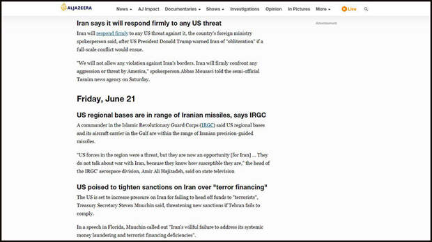 Сам Дональд Трамп 25 июня написал в своём Twitter, что «любая иранская атака против чего-либо американского будет встречена огромной и подавляющей силой».