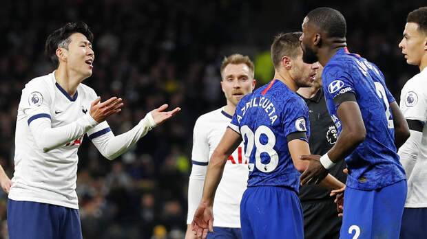 На 61-й минуте встречи, когда гости уже вели со счётом 2:0, на поле произошла стычка между нападающим Сон Хын Мином и защитником Антонио Рюдигером. В борьбе за мяч футболист «Тоттенхэма» упал на газон и ударил ногой в корпус соперника. Главный арбитр Энтони Тейлор после просмотра видеоповтора сделал вывод, что со стороны корейца была отмашка, и показал ему красную карточку. Это решение возмутило болельщиков хозяев, посчитавших, что речь идёт о симуляции. Они освистали темнокожего немца, а в сторону ворот Кепы Аррисабалаги полетели посторонние предметы.