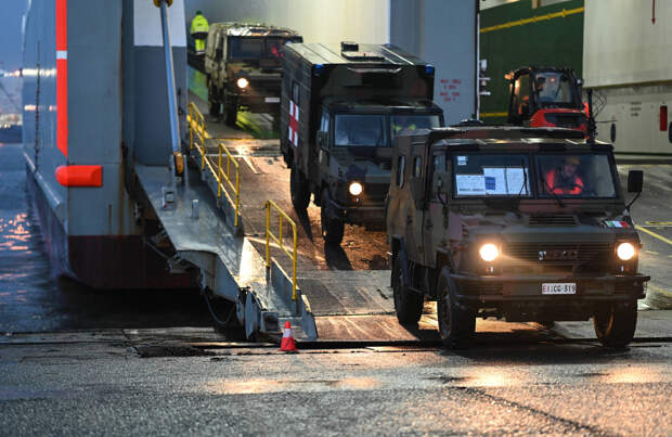 Итальянские солдаты прибывают с техникой и снаряжением в морской порт Эмден. Эмден, Нижняя СаксонияLegion-Media